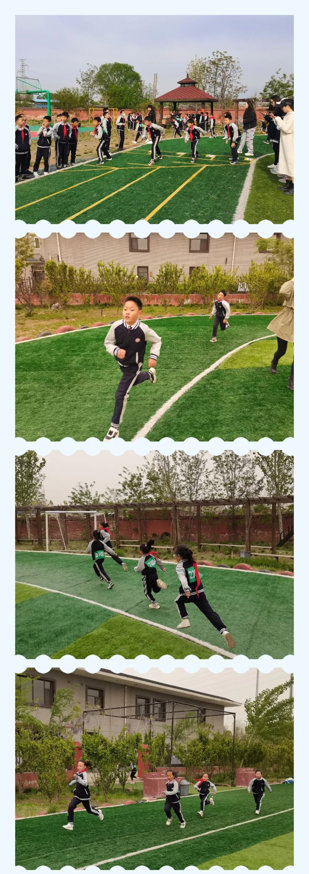 面对绿色跑道,孩子们迈着坚定有力的步伐拼尽全力冲向终点。